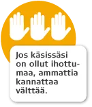 Ihon suojaamiseksi on hyvä käyttää hajusteetonta käsivoidetta työpäivän alussa ja lopussa. Myös suojakäsineitä kannattaa käyttää aina kun mahdollista.