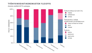 Kokonaisaineiston lisäksi työhyvinvointikokemuksia voi tarkastella Työelämätieto-palvelussa toimialan, koulutuksen, iän ja sukupuolen mukaan.