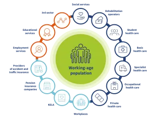 In order to build a service package for working-age people, a few things are necessary to establish. The essential providers in the wellbeing services county must be recognized, the structure and the assignment of responsibility in the collaboration must be co-ordinated, and the shared practices between the different service providers must be developed to support the working ability of the working-age population. As there are many service providers in wellbeing services counties, occupational health care multiprofessional collaboration teams have been established in all counties. The team co-ordinates exporting occupational health care practices to the collaborations and the development of practices in wellbeing services counties.