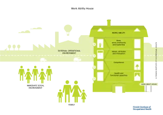 The term “working ability” is used to describe a person's ability to work or manage their work-related tasks both in assessing their working ability and improving it. The Työkykytalo model highlights the importance of work and working conditions. The model also considers social issues and focuses on realizing working ability, getting through at work and assessing its conditions. A singular person is considered an active operator in this model. The Työkykytalo model pictures working ability as a four-story house. The base (the first floor of the house) is the physical, psychological, and social functional ability.