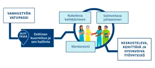 Eettinen kuormitus ja sen hallinta oli Vanhustyön vatupassin ensimmäinen osio. Seuraavaksi tarjoamme avuksesi kolme konkreettista keinoa, joilla voit kehittää omaa ja työyksikkösi eettistä osaamista ja eettistä työkulttuuria: kokeileva kehittäminen, valmentava johtaminen ja mentorointi. Suosittelemme, että tutustut näihin itsellesi tärkeimmältä tai helpoimmalta tuntuvassa järjestyksessä.