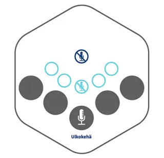 - Jos yhtäaikaa keskustelemassa on vähän henkilöitä (6 tai alle), mikrofoneja voi pitää koko keskustelun ajan auki. Tämä luo yhteisen tilan tunteen