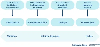 Yhteistyötaitojen kehittyminen edellyttää, että organisaatioiden ja toimintojen yhdistämisessä ylitetään ammatillisia rajoja. Johtamisella ja organisaation hallinnolla turvataan rakenteet ja varmistetaan resurssit. Monialaisen ja moniammatillisen työskentelyn keskiössä ovat aina työntekijät. He kohtaavat asiakastyössään erilaisia toimintakulttuureja ja työtapoja. Näkemykset saattavat olla ristiriitaisia, kun työtä tehdään yhdessä. Sosiaali- ja terveydenhuollon yhdistyminen edellyttää yhteistä tekemistä, jolloin ajan myötä yhteinen osaaminen kertyy. Yhteisen osaamisen kertymisessä on kyse työelämän vuorovaikutuksellisesta muutoksesta, missä osaaminen nähdään yhteisasiantuntijuutena.