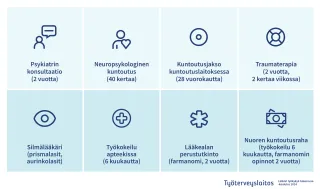 - Kuntoutusneuvonta ja -ohjaus sekä tarvittaessa kuntoutuspalveluiden yhteensovittaminen.