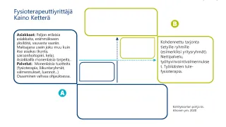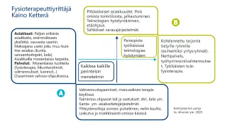 Tarkastele lokeroihin A (Työn sisältö ja tarkoitus nyt sekä Toimintatavat nyt) ja B (Lähitulevan työn sisältö ja Lähitulevan toimintatavat) kirjaamiasi asioita. Anna nimi nykyiselle toimintamallille (A) sekä uudelle toimintamallille (B).