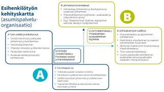 Kehityskartta kiteyttää muutoskuvan, jossa yhdistyvät samanaikaisesti tapahtuvat, toisistaan erilliset muutosprosessit. Muutokset näkyvät kunkin työntekijän työssä esimerkiksi muuttuvina arkityön ohjeina ja sääntöinä tai työnjaon ja työtehtävien uudelleenmäärittelyn kysymyksinä.
