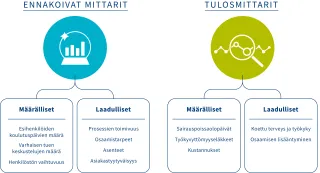 | Yhdessä arvioidaan toiminnan vaikuttavuutta ja parannetaan toiminnan laatua. | Laatua tarkastellaan työpaikan näkökulmasta kiinnittäen huomiota palvelujen järjestämiseen, määrään, sisältöön ja saavutettavuuteen. Toisaalta tarkastellaan palvelujen tuottajan osaamista, laillisuutta ja palvelun laatua. |