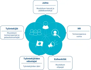 Kuvio 2. Työpaikan eri toimijoiden roolit muutoksessa.