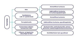 Unkila K, Tuomimäki S, Juvonen-Posti P, Tarvainen K, Nevala N, Virtanen M. Tue työhön paluuta ja työssä jatkamista. Työhön kytkeytyvä kuntoutus -tietopaketti. Jyväskylän ammattikorkeakoulu, Työterveyslaitos, Oulun yliopisto, Oulun ammattikorkeakoulu 2022.