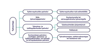 Kuvio 17. Työntekijän haettavaksi kuuluvat työkyvyn ja työllistymisen tuen palvelut ja etuudet.