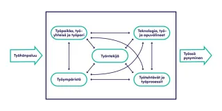 Kuvio 15. Kuviossa esitetään eri tekijöiden välisiä yhteyksiä työssä pysymisen näkökulmasta.