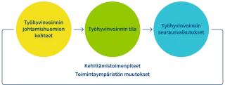 - asioista, joihin työhyvinvoinnin oletetaan olevan yhteydessä (esim. henkilöstön vaihtuvuus tai asiakas- ja potilastyytyväisyys).