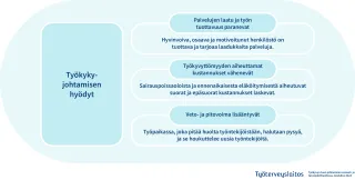 Juvonen-Posti P, Joensuu M, Reiman A, Heusala T, Takala E-P, Ahonen G. 2014. Työkykyjohtaminen - johdettua yhdessä tekemistä. Tapaustutkimus käytännön johtamismenettelyistä ja taloudellisesta vaikuttavuudesta kunnallisessa liikelaitoksessa. Helsinki: Työterveyslaitos. Tietoa työstä - Työterveyslaitos.