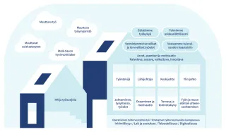 Interaktiivisesta kuvasta voit plus-merkkiä painamalla lukea kuvauksen vaikuttavan työkykyjohtamisen osa-alueista. Oikeasta ylälaidasta voit klikata kuvan suuremmaksi.