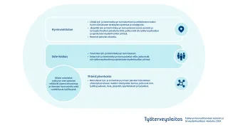 Normia-Ahlsten L, Riisalo-Mäntynen T, Karjalainen J, Turkia T, Sahrio A, Salmi S-M, Pitkäranta S. Työkyvyn ja työllistymisen tuki hyvinvointialueilla - suositukset toimintamallien käyttöönottoon. Terveyden ja hyvinvoinnin laitos. Päätösten tueksi 6/2023. Saatavilla osoitteessa: https://www.julkari.fi/bitstream/handle/10024/146474/URN_ISBN_978-952-408-066-8.pdf?sequence=1&isAllowed=y
