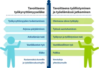Kuva 1. Tavoitteena työelämässä jatkaminen. Lähde muokattu: Toimintakykykeskus, Pirkanmaa, Etelä-Pohjanmaa.