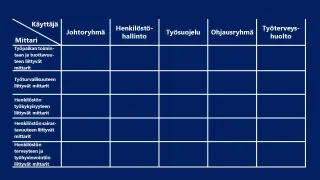 Mittarit tulee valita yhdessä jokaisen työpaikan tarpeisiin perustuen, eikä kaikille työpaikoille sopivaa, yhteistä mittaristoa ole.