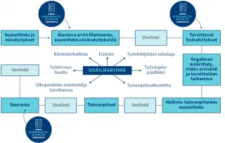 Työtilojen sisäilmaongelmien ratkaiseminen ja erilaisten sisäilmatilanteiden hoitaminen työpaikalla vaatii usein moniammatillista osaamista. Sisäilmaan liittyvissä asioissa työpaikan linjajohto, kiinteistöhallinta ja työsuojelu tekevät yhteistyötä mm. rakennusterveysasiantuntijan ja lääkärin sekä tarvittaessa työyhteisöasiantuntijan kanssa. Työpaikan henkilöstön osallistumismahdollisuus sisäilmatilanteiden selvittämisessä ja ratkaisemisessa on tärkeää. Työterveyslaitos tarjoaa sisäilmaan liittyvää koulutusta, asiantuntijaluentoja ja sisäilmastokyselyn.