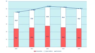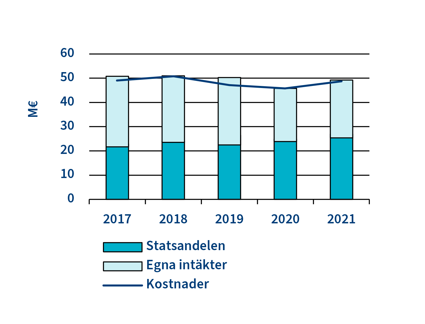 Kostnadernas, intäkternas och statsandelens utveckling 2020–2024