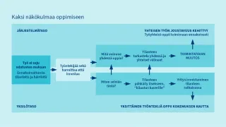 - Oppimista tapahtuu työn ääressä, esimerkiksi parityöskentelynä.