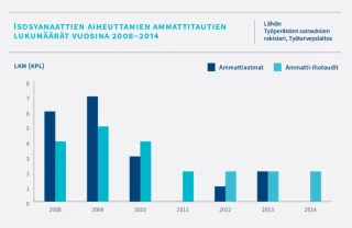 Kuva 1. Isosyanaattien aiheuttamat ammattitaudit. Lähde: Työperäisten sairauksien rekisteri, Työterveyslaitos.