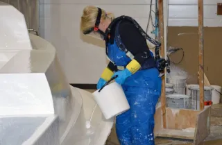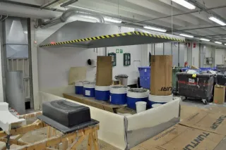 Suurien raaka-ainemäärien kulutus edellyttää työtilojen suunnittelua ja hyvien teknisten ratkaisujen käyttöönottoa. Polyesterihartsin työstö edellyttää sekä hengitysteiden että ihon tarkkaa suojaamista.