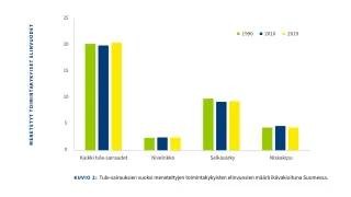 Sairastuneet voivat menettää toimintakykyisiä elinvuosia erilaisten lihasten, luuston ja nivelten ongelmien vuoksi. Näiden menetettyjen toimintakykyisten elinvuosien määrä ei ole vähentynyt kolmenkymmenen vuoden aikana.